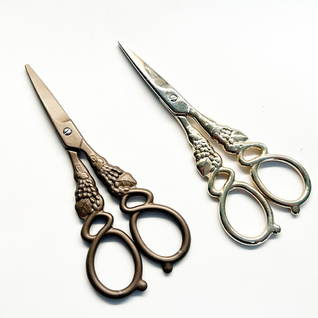 アンティーク調ぶどうモチーフのデザインシザー 手帳コラージュの気分を更に高めてくれる大人気のアイテムです。 普通のハサミより、少しだけ心躍る。そんなデザインシザーです。 カラーデザイン:ゴールド、ブラウン サイズ:巾5cn×高12.6cm 製造:中国 【ご購入に際してのご注意】 *お使いのモニターにより商品写真との色味などに違いが出ることがございます。 *本商品は海外製につき、柄ずれ、折れ、枚数誤差などがある場合がございます。1商品ずつ検品はしておりますが、開封しての検品はしておりませんので、予めご了承いただけますようお願いいたします。 以上のご注意事項をご了承の上でお買い求めいただけますよう、よろしくお願い致します。 その他ハサミ、デザインシザーはこちらから https://tyia.theshop.jp/categories/5323837