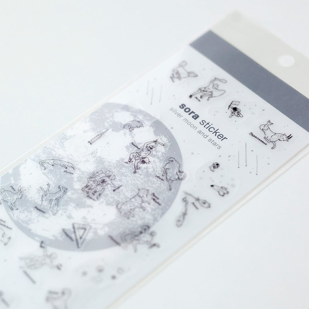 【銀月と星】シルバー 暦生活 宙のシール 新日本カレンダー 星座 クリアシールシート 宇宙