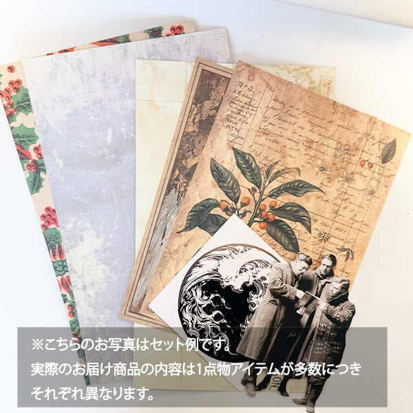 ※ 1点1点アンティークの紙ものなどを詰め合わせているので、写真と同じ素材が届くものではございません。ランダム封入になりますので、オンリーワンの紙ものをお楽しみいただくボックス・セットになっています。