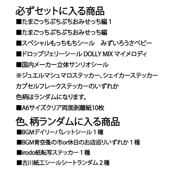 ドロップジェリーマイメロディ、スペシャルモッチモチシール、たまごっち大人の図鑑が必ず入る!【シール10種セット+クリア台紙A6サイズ10枚】ジュエルマシュマロ、カプセルフレーク、シェイカーステッカー クーリア サンリオ カミオジャパン BGM 古川紙工 ティーズファクトリー